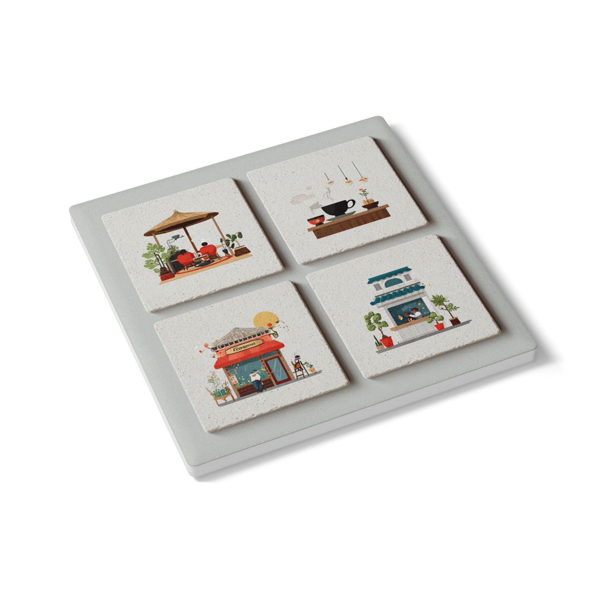 Gathering Places Ceramic Coaster Set | 4-Piece Global Traditions Collection